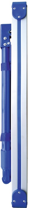 Plate-forme robuste en aluminium · Coins de protection antichoc en plastique · Pochette à documents sur l’étrier coulissant · Zone de prise rembourrée · Étrier coulissant extractible et pliable · Pneus en TPR, ne laissent pas de traces · 2 rouleaux de renvoi et 2 fixes · Les roues rentrent et sortent automatiquement par pivotement · Hauteur de 90 mm seulement en état replié